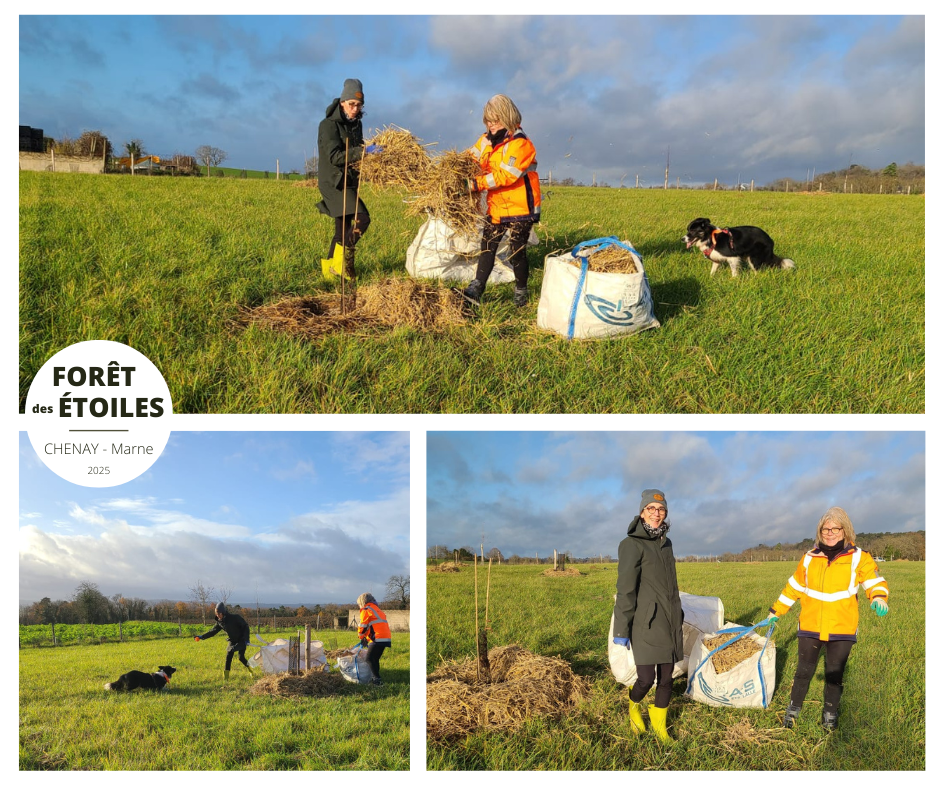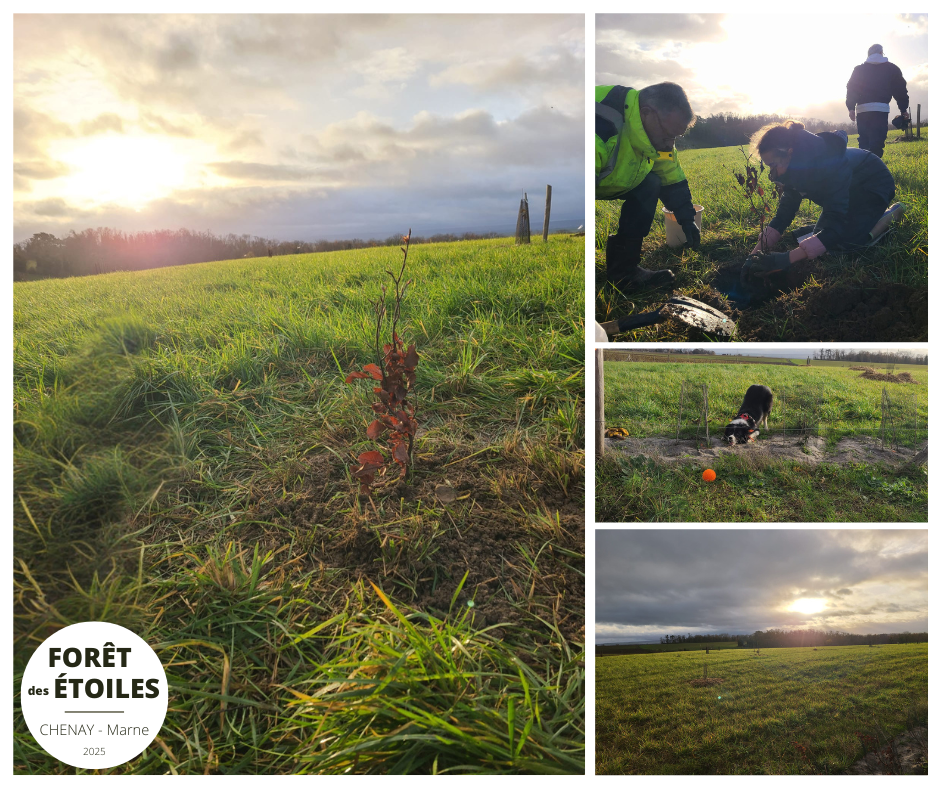 Après la première plantation d’automne, nous nous sommes retrouvés vendredi 5 et samedi 6 décembre pour poursuivre la mise en place des arbres-compagnons des chênes-Étoiles à Chenay.